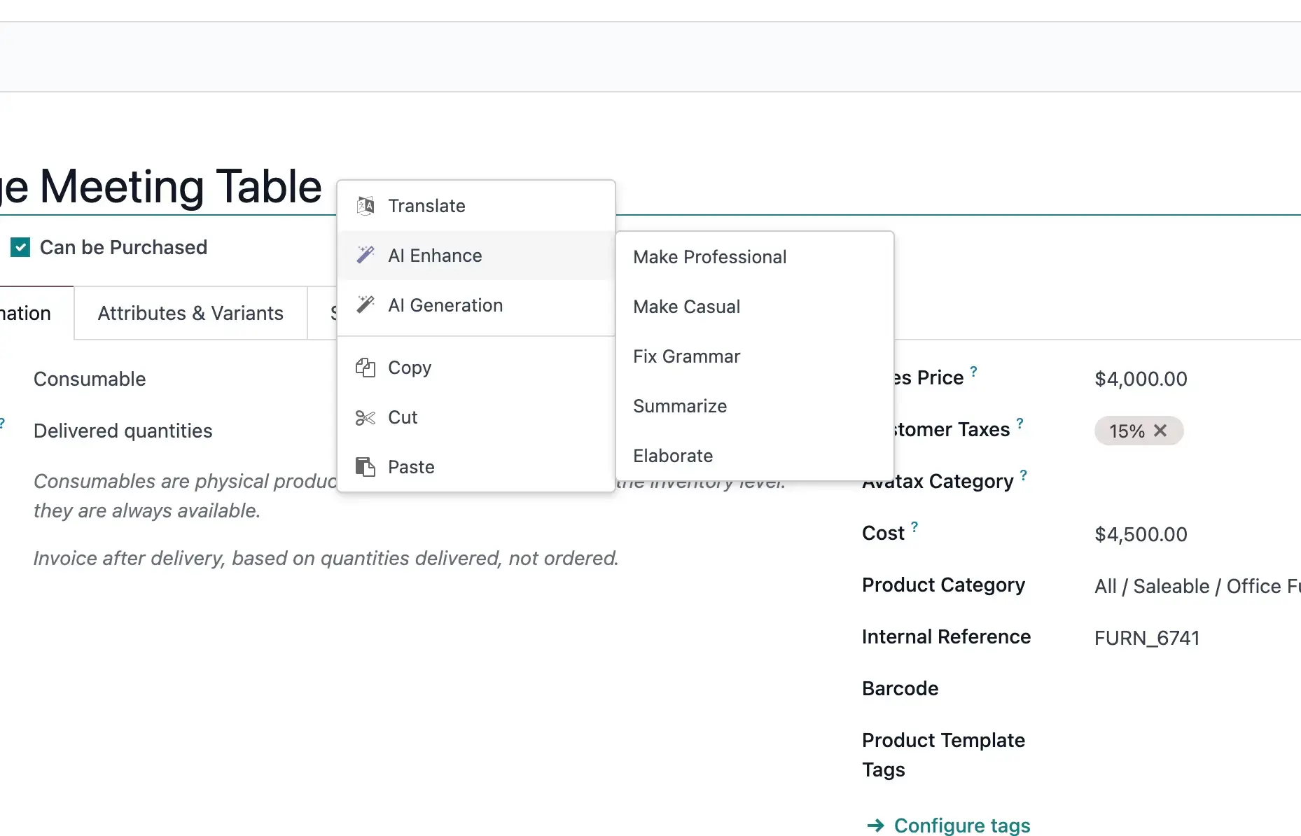 Elevate your Odoo with Text Enhancer - AI tools for smarter text fields. Correct, generate, translate, and refine content easily with a click.